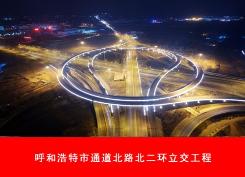 該工程位于內蒙古自治區(qū)首府呼和浩特市北二環(huán)路與通道北路路口,二環(huán)北路規(guī)劃等級為城市快速路,東西向,規(guī)劃紅線寬度70m,本工程北二環(huán)西起K0+140,東至K1+420,工程范圍內線路長1280 m;通道北路為城市主干道,南北向道路,規(guī)劃紅線寬度為50m,北起K0+100,南至成吉思汗交叉口K1+304.322,工程范圍內線路長1204.322m。
