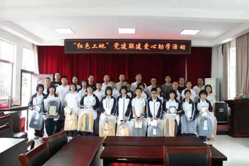 天長(zhǎng)北路安置項(xiàng)目部聯(lián)合臺(tái)州黃巖中環(huán)房地產(chǎn)開發(fā)有限公司、黃巖區(qū)建筑工程質(zhì)量安全事務(wù)中心黨支部和黃巖區(qū)頭陀鎮(zhèn)中學(xué)黨支部,以黨建聯(lián)建為載體,以捐資助學(xué)、唱紅歌、講紅色故事為活動(dòng)抓手,為頭陀鎮(zhèn)中學(xué)生活困難的學(xué)生送上書包、書本等物品,讓紅色文化在孩子們的心里落地生根,將紅色基因代代相傳。