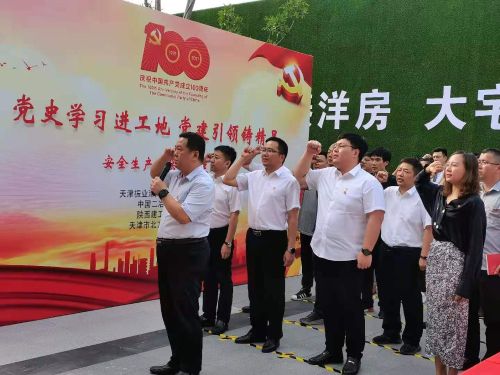 6月23日下午,天津振業(yè)津海房地產(chǎn)開發(fā)有限公司聯(lián)合中國二冶集團(tuán)冶金分公司天津振業(yè)海洋科技園住宅項(xiàng)目、陜西建工集團(tuán)有限公司及天津市北方建設(shè)監(jiān)理事務(wù)所共同舉辦“黨史學(xué)習(xí)進(jìn)工地,黨建引領(lǐng)鑄精品”活動(dòng),中國二冶集團(tuán)天津分公司總經(jīng)理王哲、天津振業(yè)海洋科技園住宅項(xiàng)目部經(jīng)理?xiàng)罨⒓捌涔芾砣藛T、工人代表參加了本次活動(dòng)。