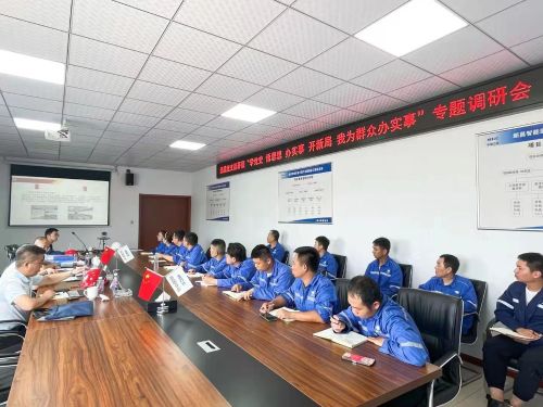 會(huì)上,該項(xiàng)目經(jīng)理部分別從項(xiàng)目黨支部的基本概況、“三會(huì)一課”制度執(zhí)行情況、 領(lǐng)導(dǎo)班子建設(shè)情況、黨費(fèi)收繳情況、項(xiàng)目團(tuán)隊(duì)建設(shè)情況、黨支部榮譽(yù)以及存在的不足等進(jìn)行匯報(bào),同時(shí)集中反映了項(xiàng)目部員工普遍提出的共性問(wèn)題。在聽取以上情況匯報(bào)后,結(jié)合該項(xiàng)目黨支部的工作開展情況和當(dāng)前問(wèn)題事項(xiàng),郝海飛指出,當(dāng)前正值黨史學(xué)習(xí)教育深入推進(jìn)階段,為扎實(shí)將“我為群眾辦實(shí)事”活動(dòng)落到實(shí)處,項(xiàng)目部要堅(jiān)持把察民情訪民意作為“我為群眾辦實(shí)事”的第一步,深入基層群眾、深入施工一線,聚焦服務(wù)對(duì)象,廣泛聽取民生意見,了解民生需求,確保把實(shí)事辦在群眾心坎上;針對(duì)員工集中反映的共性需求和存在的普遍性問(wèn)題,郝海飛表示,公司將充分發(fā)揮國(guó)有企業(yè)行業(yè)優(yōu)勢(shì),堅(jiān)持從問(wèn)題實(shí)際出發(fā),進(jìn)一步制定切實(shí)可行的解決措施,著力保障員工的需求,真正做到為群眾辦實(shí)事、辦好事,不斷提升員工幸福感、獲得感。