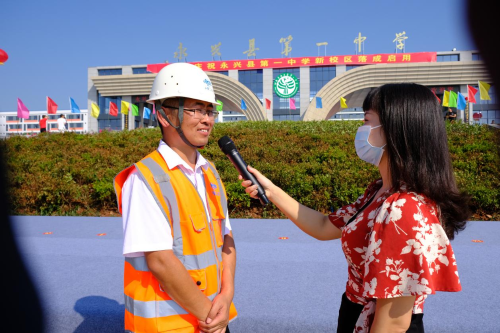 在揭牌儀式后,中國(guó)二冶永興一中項(xiàng)目經(jīng)理王海洋接受了當(dāng)?shù)孛襟w記者的采訪。他指出,中國(guó)二冶項(xiàng)目部面對(duì)工程時(shí)間緊,任務(wù)重,難度大等嚴(yán)峻形勢(shì),在中國(guó)二冶的正確領(lǐng)導(dǎo)下,在相關(guān)職能部門的鼎力支持,通力合作下,克服了疫情及雨天和惡劣天氣帶來(lái)的不利影響,充分發(fā)揚(yáng)了“堅(jiān)韌不拔,勇攀高峰”的企業(yè)精神,精心組織,日夜奮戰(zhàn),搶工趕工,為永興一中的如期開學(xué)做了大量卓有成效的工作,彰顯了央企的責(zé)任擔(dān)當(dāng),確保了工程的按期履約,同時(shí)也得到了當(dāng)?shù)乜h委縣政府和當(dāng)?shù)乩习傩盏母叨仍u(píng)價(jià)。
